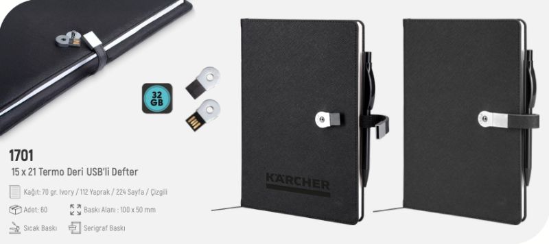 1701 Termo Deri USB'li Defter